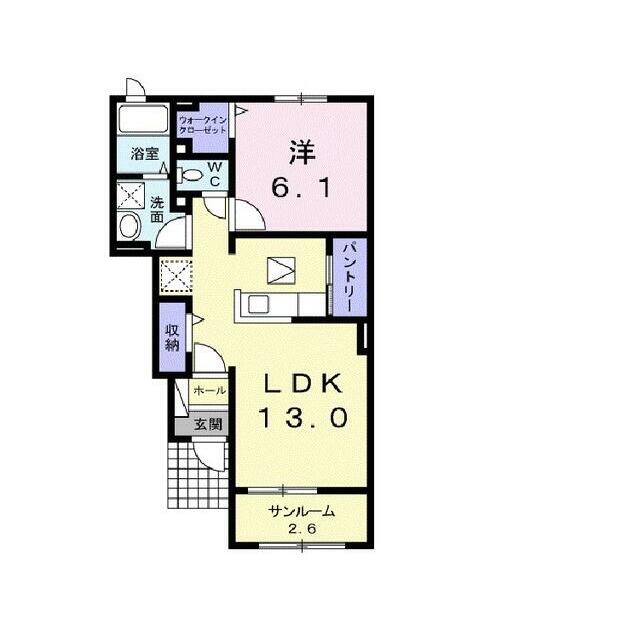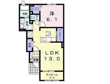 1LDK(洋6.1・LDK13・サンルーム2.6) |